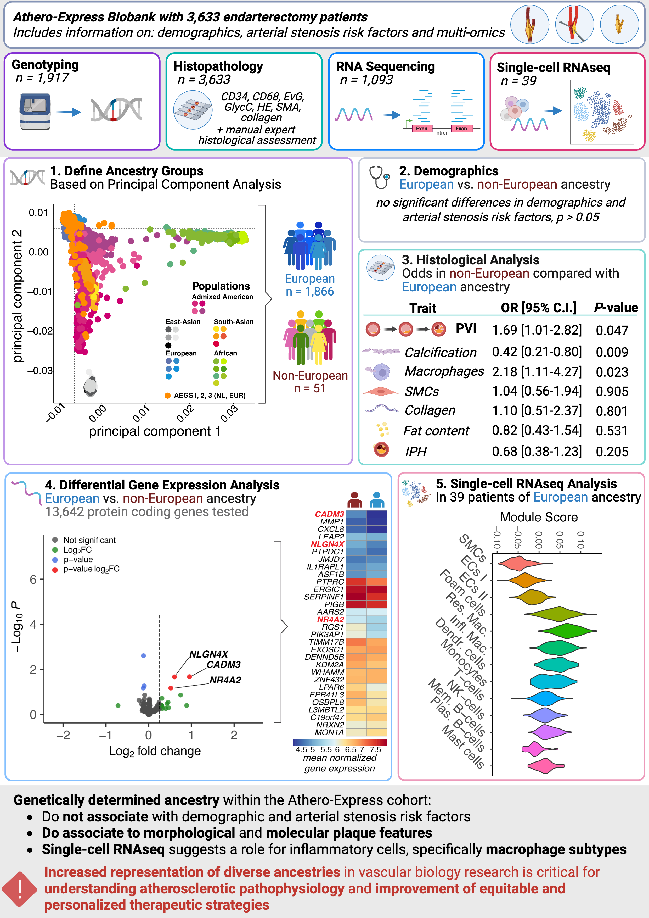 These results emphasize that genetic ancestry matters in the biology of atherosclerosis. Including more diverse populations in cardiovascular research is vital to uncover differences in disease mechanisms and develop personalized, equitable therapies.